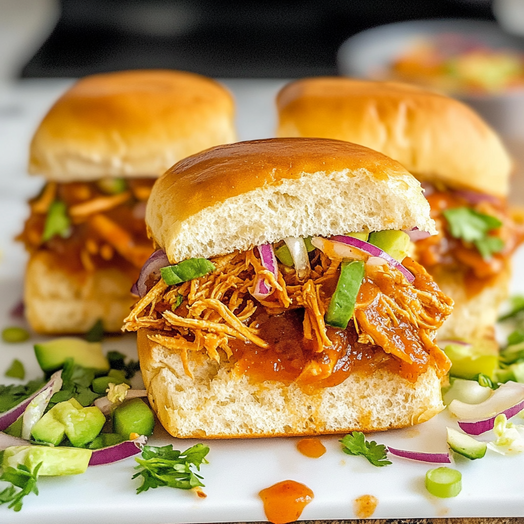 Juicy BBQ Pulled Chicken Sliders are a crowd-pleasing delight, perfect for any gathering! Tender, shredded chicken is slowly cooked in a sweet and tangy barbecue sauce, all served on soft slider buns. These sliders are not only easy to make but also packed with flavor, making them an irresistible addition to game days, picnics, or casual dinners with friends. Add your favorite toppings for a customizable meal that everyone will love!