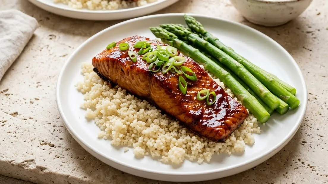 A quick, sweet-savory salmon dish glazed with bourbon, brown sugar, honey, and soy sauce, creating a caramelized finish that zings with flavor.