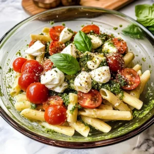 Rich Caprese Pasta Salad with Avocado Pesto Dressing