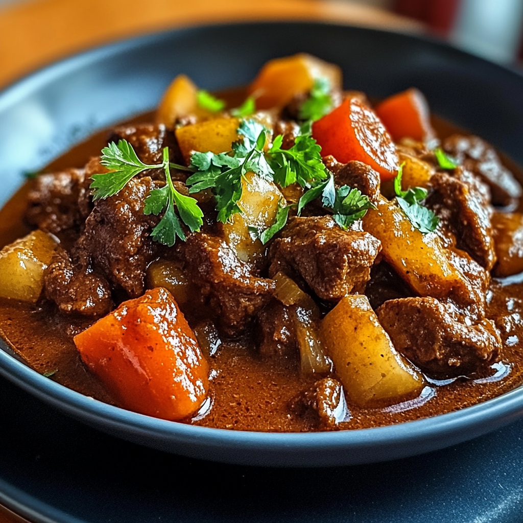 Certainly! To create a vegetarian version of this delectable dish, replace beef with hearty vegetables such as mushrooms or eggplant. Use vegetable broth instead of beef broth for added depth of flavor while maintaining that satisfying stew-like consistency.