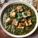 creamy spinach / Indian recipe / paneer curry / quick dinner / saag paneer / spiced sauce / vegetarian dish