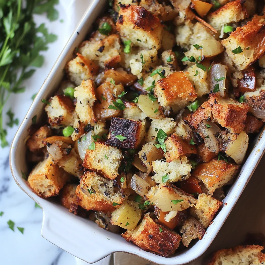 Presenting your Thanksgiving Stuffing can elevate its appeal! Here are some creative serving suggestions:- Casserole Dish: Serve directly from an attractive casserole dish garnished with fresh herbs on top for an elegant touch.