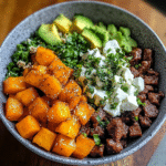 This recipe is perfect for busy weeknights or a weekend brunch with friends. Imagine the aroma of roasted sweet potatoes mingling with perfectly seasoned beef, topped off with fresh avocado slices. Each bite offers a satisfying crunch and a burst of flavors that will leave you craving more. Whether it’s a meal prep option or a cozy dinner at home, this protein bowl promises to be your new go-to dish for any occasion.