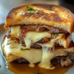 With every bite, you will experience the melt-in-your-mouth goodness of perfectly toasted bread enveloping layers of flavorful cheese and tender beef, all brought together by a luxurious au jus. This recipe is perfect for cozy nights at home or as a crowd-pleaser during gatherings. Get ready to impress your family and friends with this incredible experience that combines the best of both worlds!