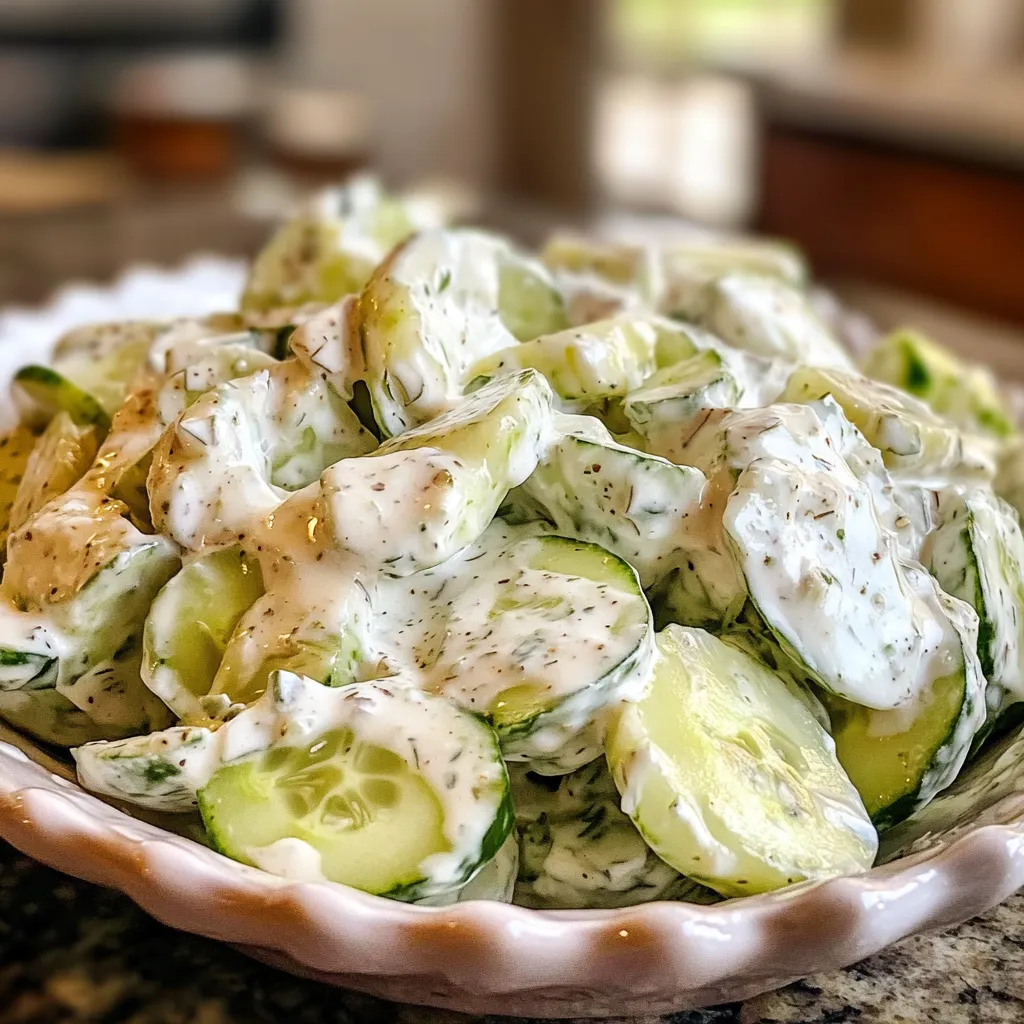 PRESENTATION MAKES A DIFFERENCE! Serve your Cucumber Ranch Crack Salad Luscious in a large glass bowl to showcase its colorful layers. Garnish with additional dill sprigs on top for an elegant touch. For individual servings, use mason jars layered with salad components; this not only looks appealing but also makes it easy for guests to grab their portion. Pairing this salad with rustic wooden boards or colorful plates can elevate your tablescape further!