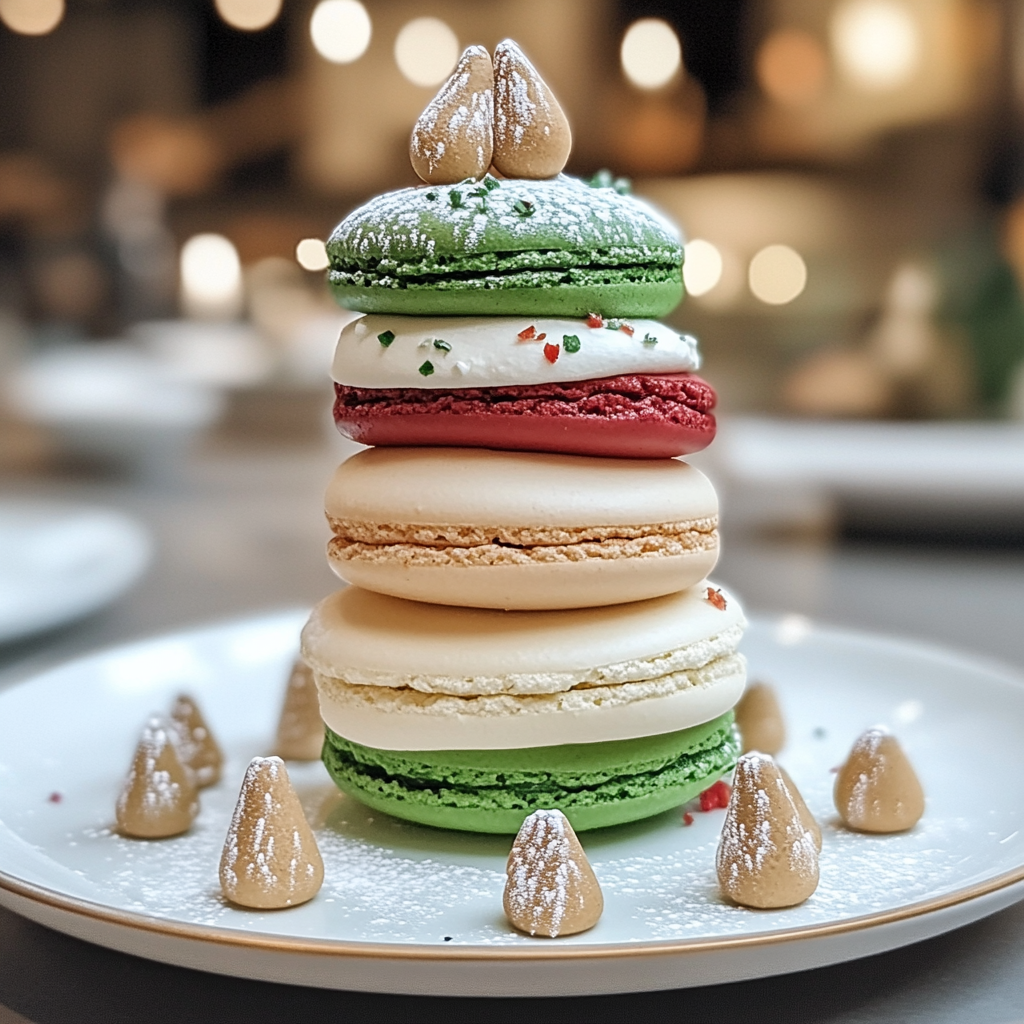 - Creative Stacking: Stack the macarons in a pyramid shape, resembling a Christmas tree. This adds a whimsical touch to your dessert table.