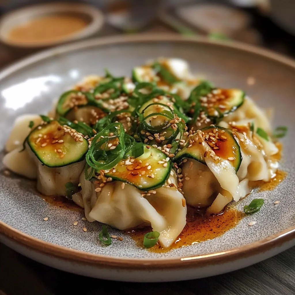 Savory Dumplings and Smashed Cucumber Salad with Peanut Sauce is a delightful dish that combines the comforting texture of dumplings with a refreshing cucumber salad, all generously drizzled with a creamy peanut sauce. Ideal for busy weeknights or last-minute gatherings, this recipe is quick to prepare and easily customizable to fit various dietary preferences. Each bite offers an explosion of flavors and textures, making it a perfect meal that will impress family and friends alike.