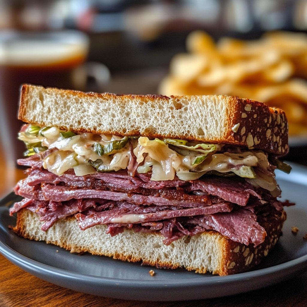 Indulge in the irresistible taste of a homemade corned beef sandwich that takes your taste buds on a savory journey! This classic recipe features tender corned beef layered with zesty sauerkraut and creamy Swiss cheese, all nestled between two slices of hearty rye bread and enhanced with Thousand Island dressing. Perfect for a casual lunch or festive gathering, this sandwich promises to impress your family and friends with its mouthwatering flavors.