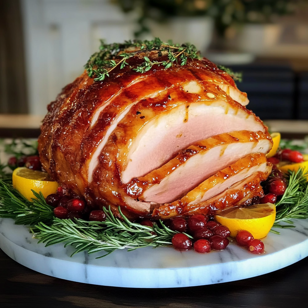 Zesty Oven-Roasted Cranberry-Dijon Glazed Ham